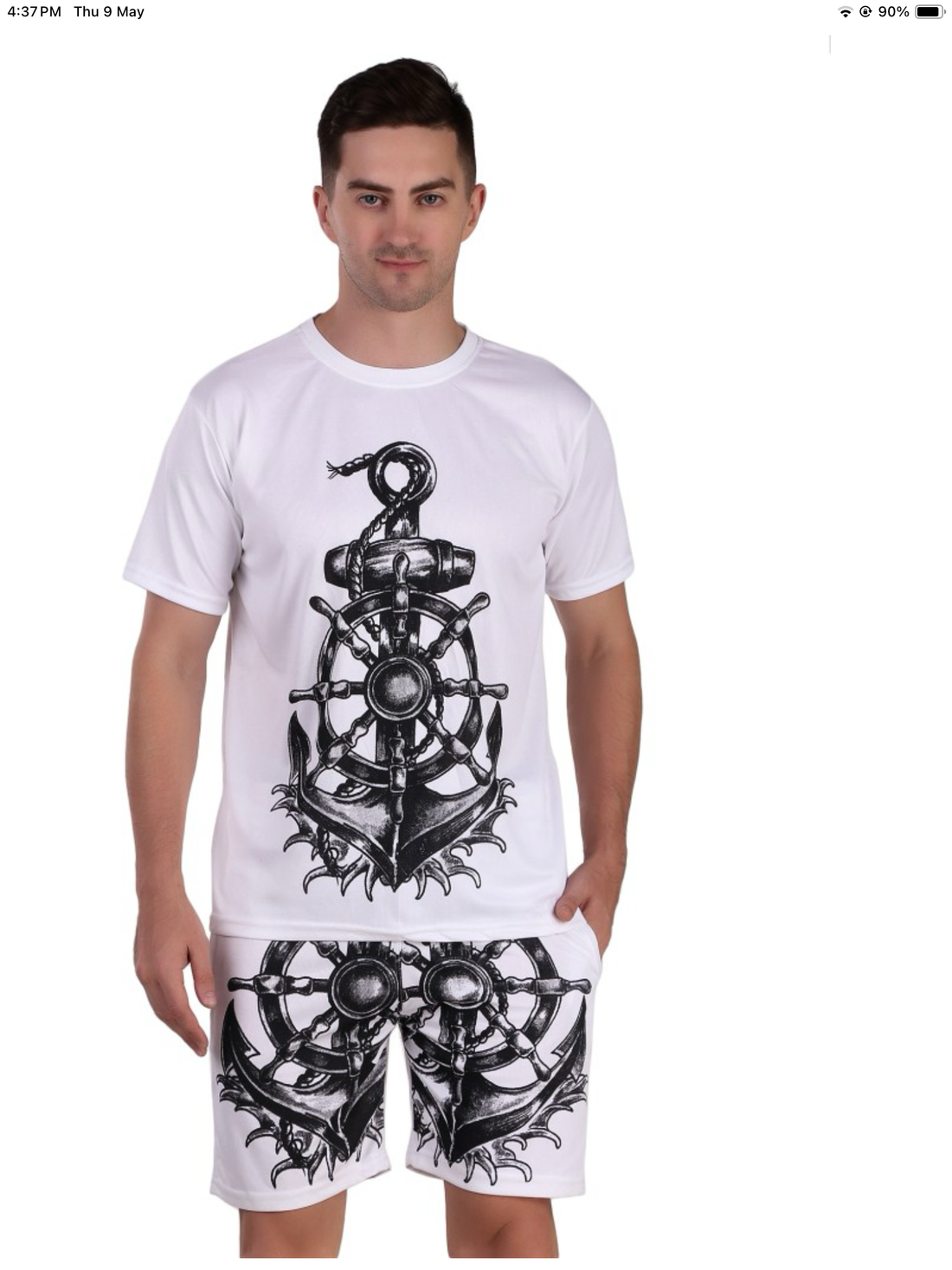 Kunzie Men’s vintage compass print T-shirt and shorts co-ord set