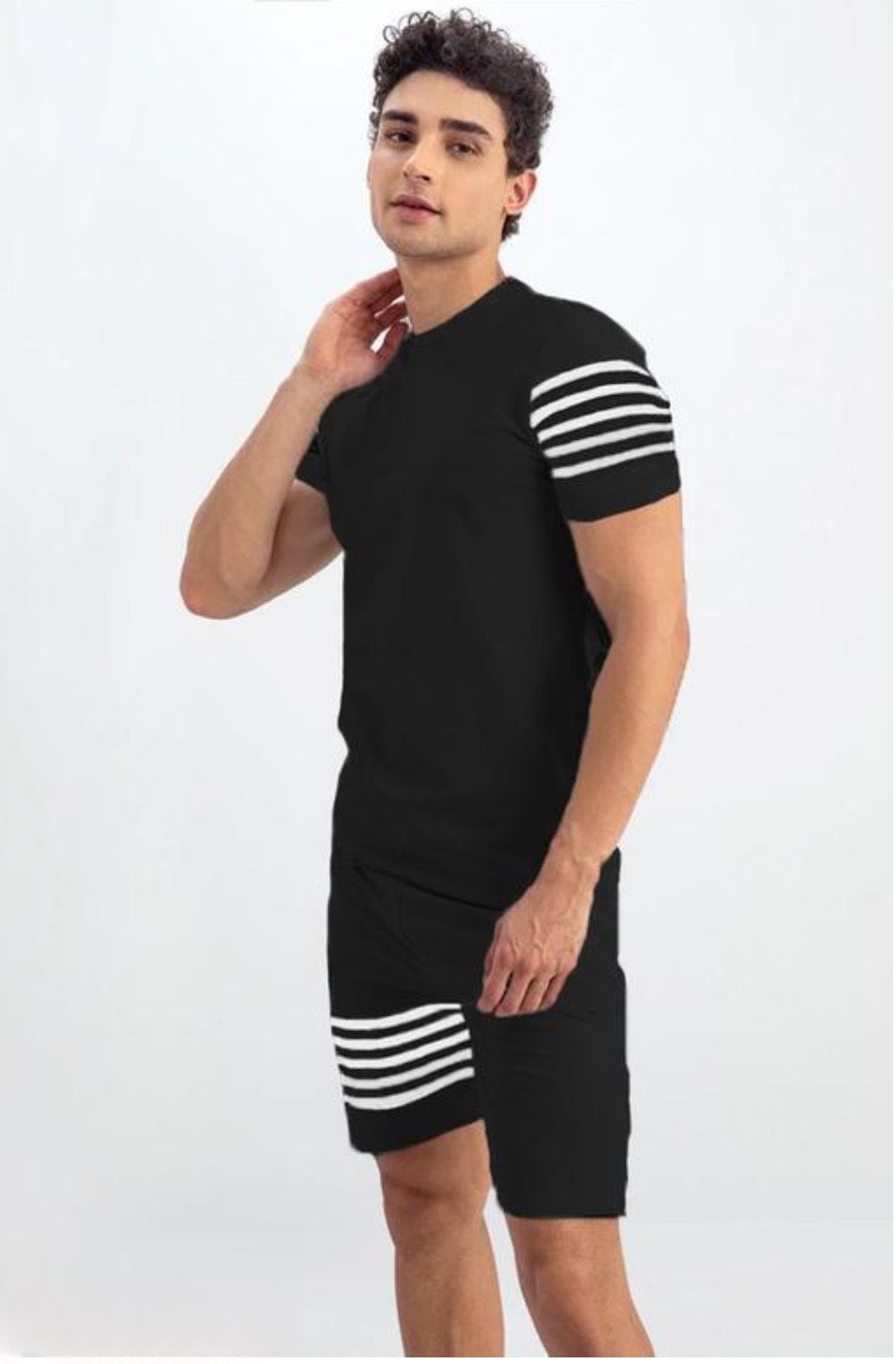 Kunzie Men’s white strips T -Shirt and shorts co-ord Set