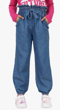 Step into comfort and style with these denim joggers for girls. Made from premium stretch denim, they offer a relaxed fit with a sporty jogger style. The elastic waistband and ankle cuffs make them easy to wear all day long, while the stylish wash gives a cool, casual vibe. Perfect for school, outings, or weekend fun!